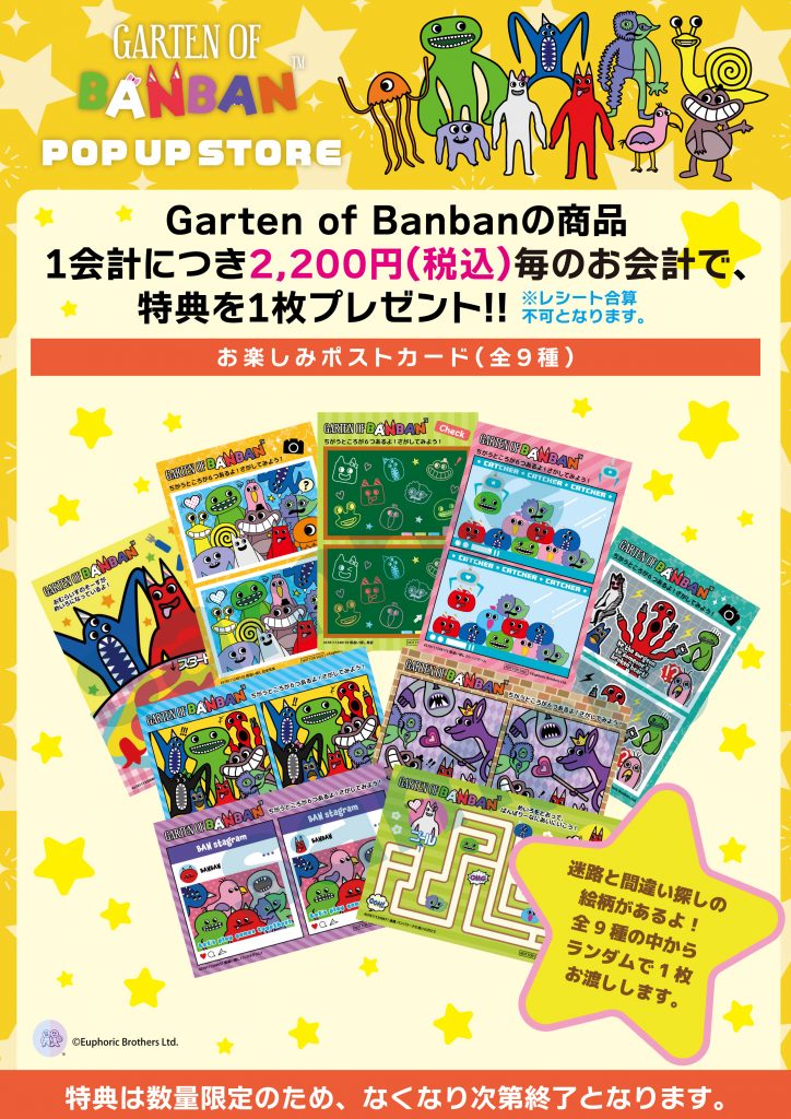 税込2,200円以上お買い上げで迷路とバンバンたちの間違い探しが載ったお楽しみポストカード(全9種)を1枚プレゼント!!