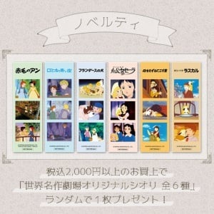 税込2,000円以上のお買上で「世界名作劇場オリジナルシオリ 全6種」をランダムで1枚プレゼント