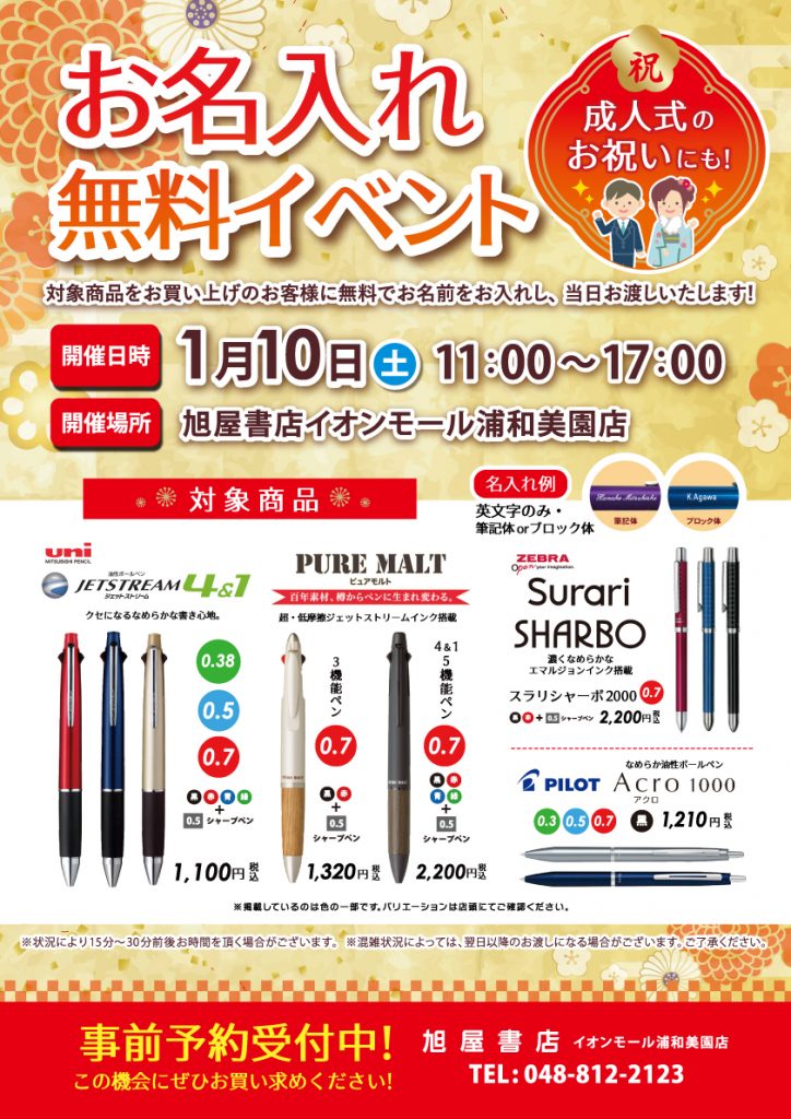 成人式のお祝いにも! お名入れ無料イベント inイオンモール浦和美園店